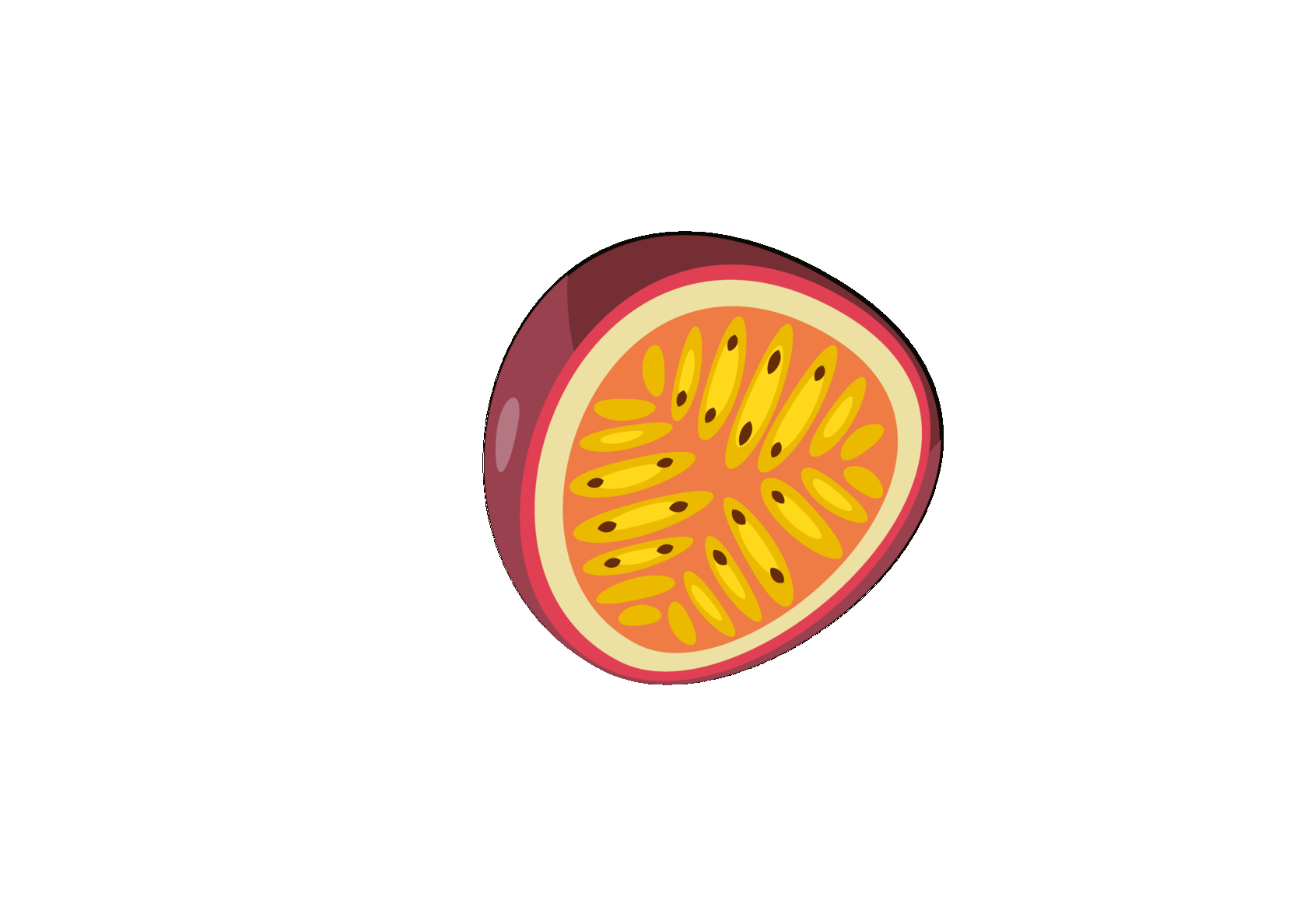 Маракуйя – его еще называют плод страсти. Аккуратно разрежьте плод пополам, удобно есть ложкой. Вкус у маракуйи яркий, кисло-сладкий с насыщенным ароматом. С мякотью и соком желто-оранжевого сока попадаются черные косточки, которые тоже съедобны.